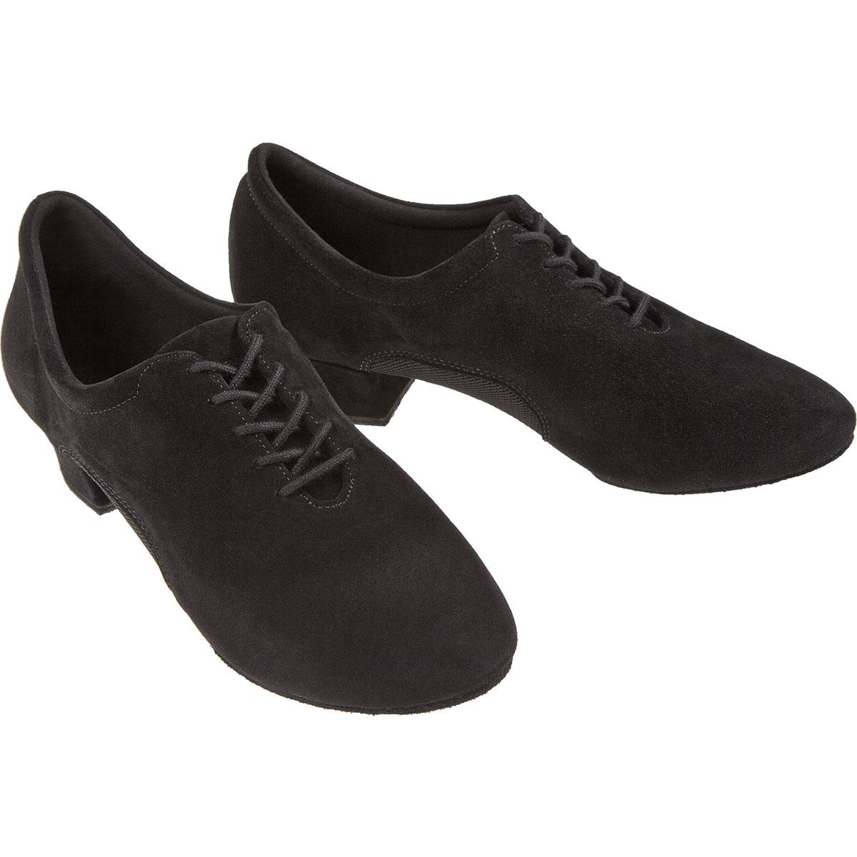Chaussures de danse latine Diamant pour hommes, fabriquées à la main en Allemagne, en version tournante de haute qualité, avec laçage fermé à 5 trous et bord de tige rembourré. Ces chaussures de danse standard VarioPro pour hommes avec semelle extérieure divisée et semelle intérieure Multiflex pour une flexibilité absolue sont fabriquées dans la largeur F (largeur normale) avec un talon de 4 cm absorbant les chocs. La doublure intérieure est en microfibre respirante et absorbante de fabrication italienne de première qualité. Le dessus en cuir velours noir combiné avec du mesh noir est fabriqué avec des matériaux souples de haute qualité en provenance d'Italie.